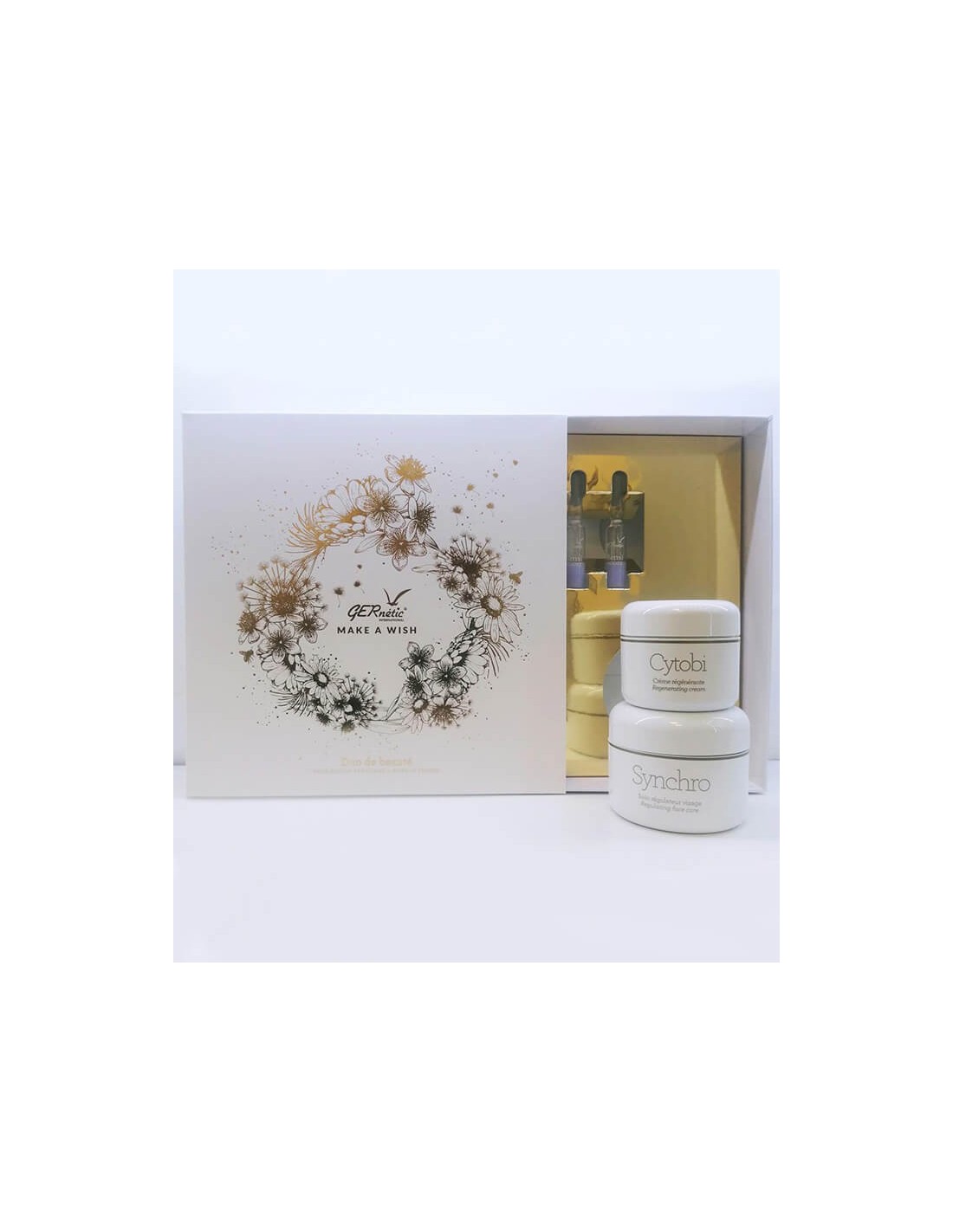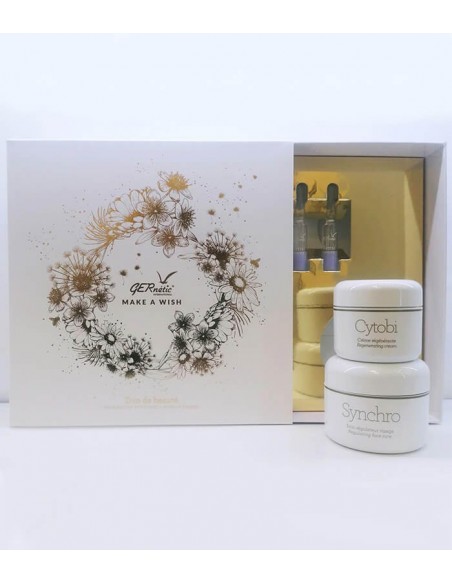 Este producto consigue la regeneración de los tejidos. Gernetic Synchro contiene diferentes aceites tales como aceite de caléndula, de almendras dulces, cera de abejas, corazoncillo y un complejo vitaminado de la serie de las vitaminas B - Vitaminas A, C, E y H. Este producto es rico en oligoelementos y aminoácidos.